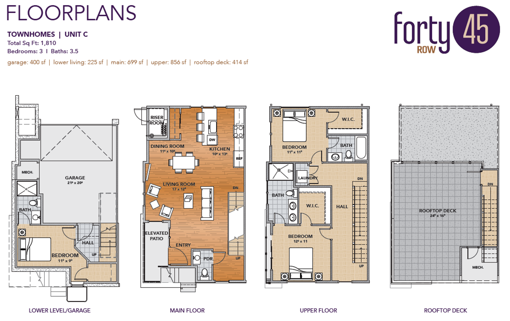 Come tour high end townhome with all the amenities you could ask for, in an unbeatable location! With its oversized rooftop patio, basement bedroom/office/flex space, modern finishes, and two car garage, the townhomes at Forty45 Row were designed with all the everyday luxuries you and your furry friend could want! Live, play, and entertain in these new construction townhomes.