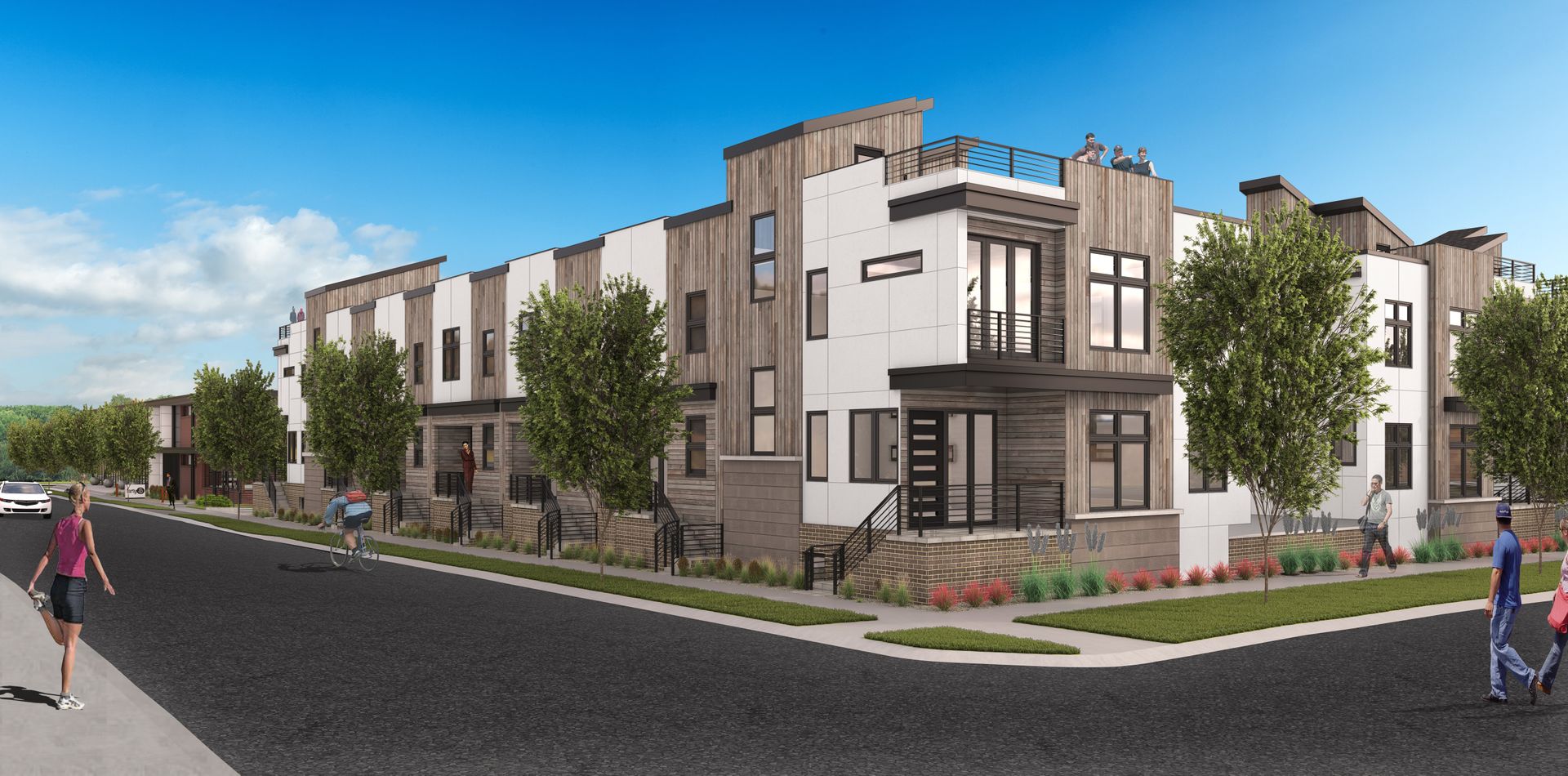 4045 Row contains 33 exceptional row homes in the heart of the Sunnyside neighborhood, built with quality and convenience in mind. Modern designer kitchens feature all stainless appliances, including a gas stove and eurostyle hood, French-door refrigerator, dishwasher and built-in microwave. Details such as the custom wood-and-steel staircase, hardwood floors, and quartz countertops are not to be missed. These spacious 3-bed, 3.5-bath townhomes feature a 2-car garage and are topped off by a spacious rooftop deck.
