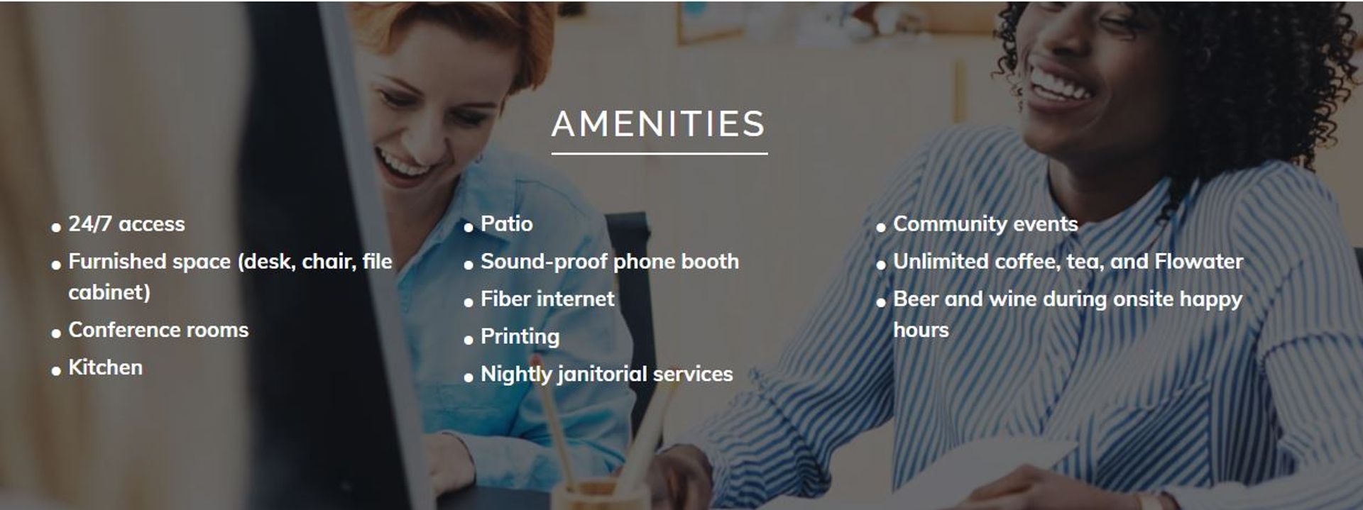 Enjoy all the perks of coworking—high-speed internet, conference room access, flexible membership terms, and a creative, supportive community—while maintaining the privacy and space your team needs to thrive. Grab lunch at Sexy Pizza next door or toast the day’s wins at Long Table Brewing right across the street.