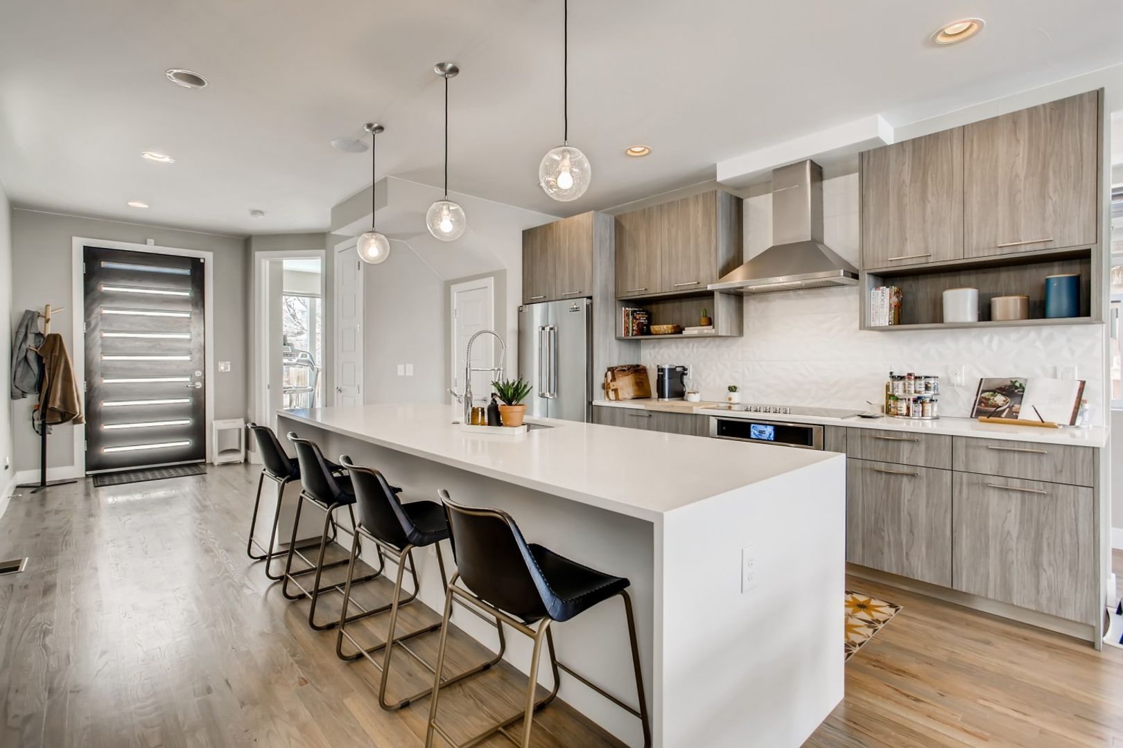 This amazing modern new construction home is in the heart of Highlands, just a block away from the heart of Highlands Square shops. The walk ability to the neighborhood combined with a spacious single family home is a rare find in the rental market. This home boost 3 bedrooms on the upper floor including the primary Bedroom and bathroom and two bedrooms connected with a jack and jill bath. The main floor is an open floorplan with a Den/extra bedroom towards the street which works perfectly for working from home. The back yard is private and leads to the detached 2 car garage. There is also a large rooftop deck with views all around and great for entertaining.